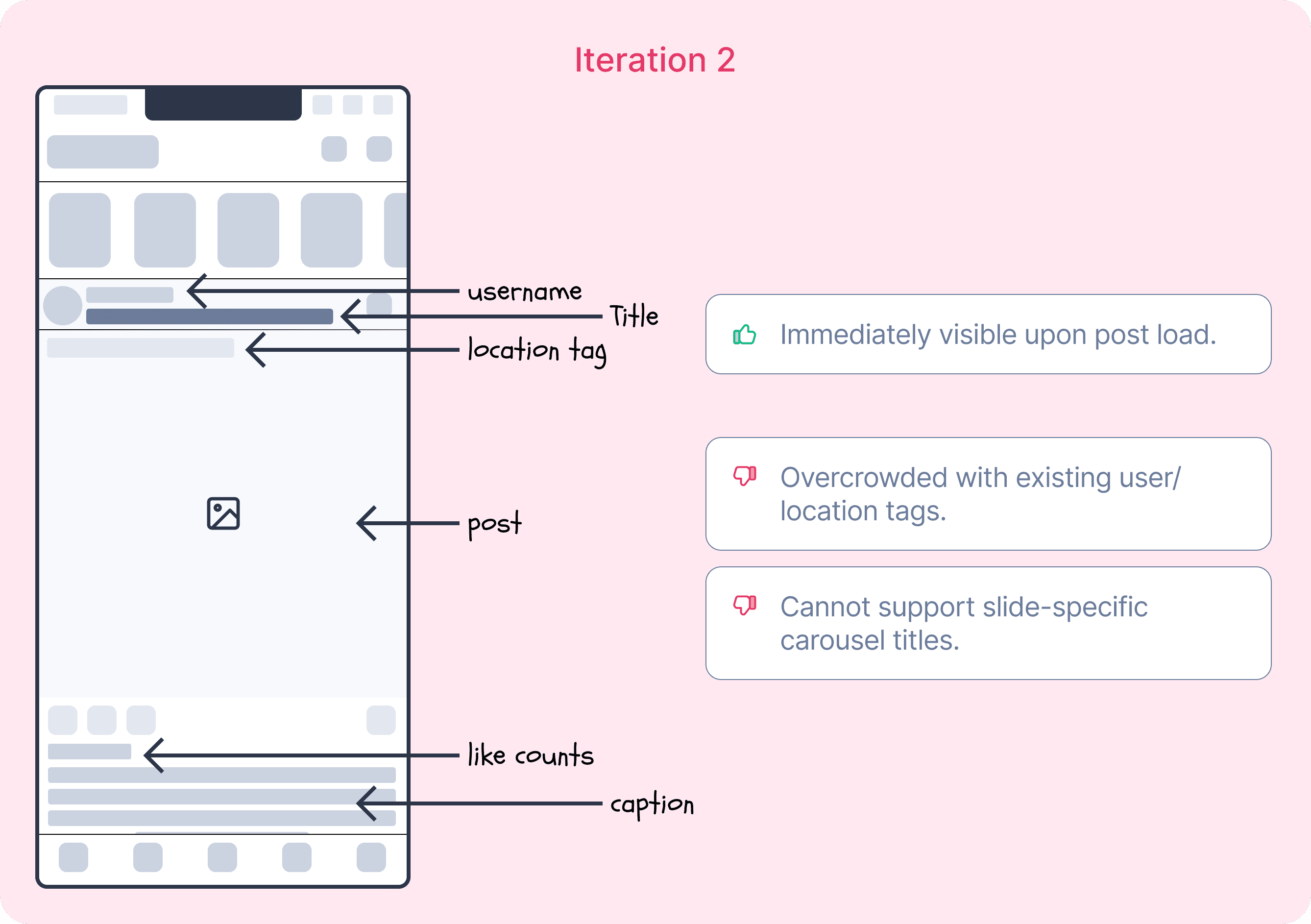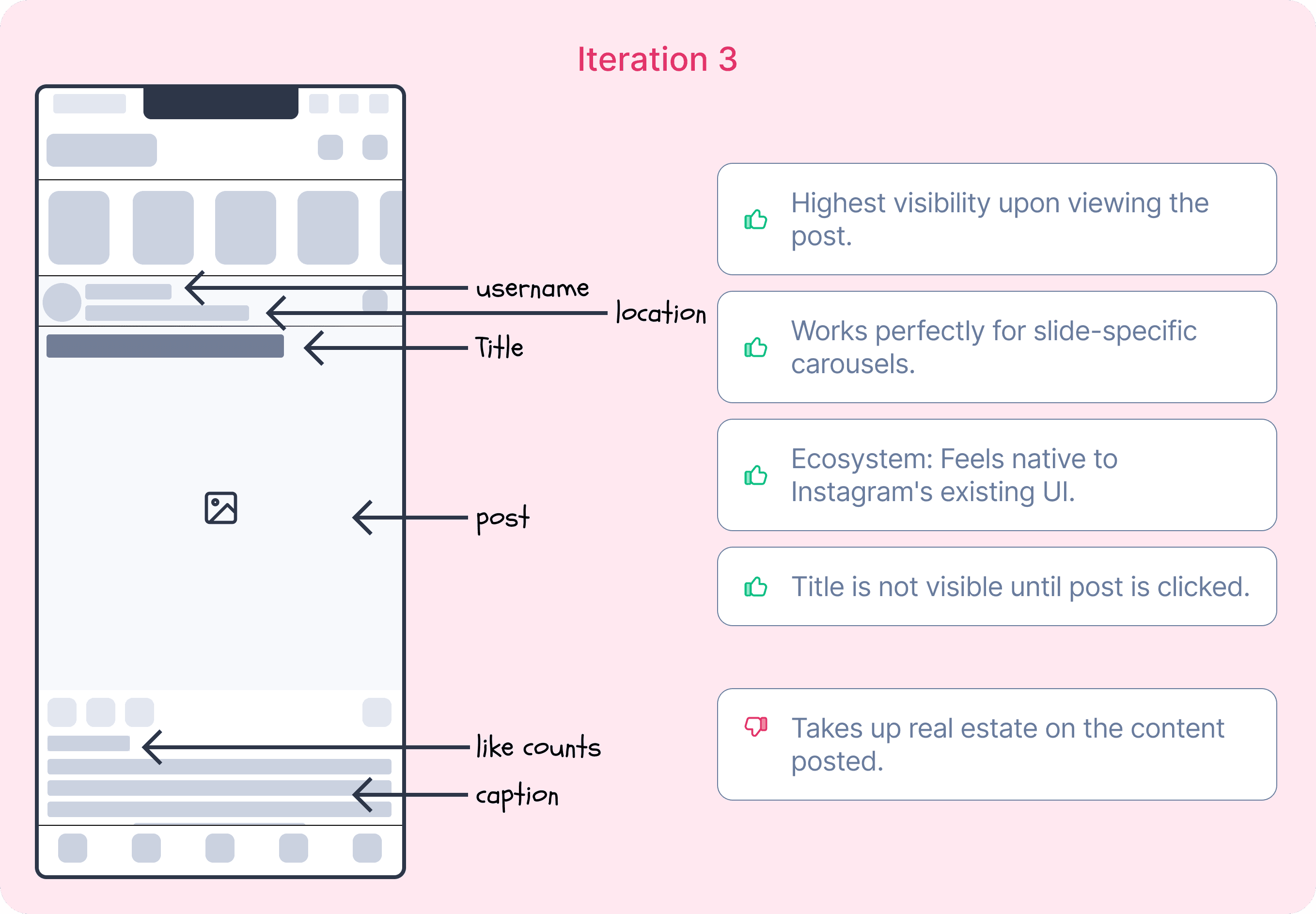 With the conceptual decision finalized, the next step was to define the precise placements and interaction models to ensure Institle provided maximum visibility without disrupting the existing, familiar Instagram interface.