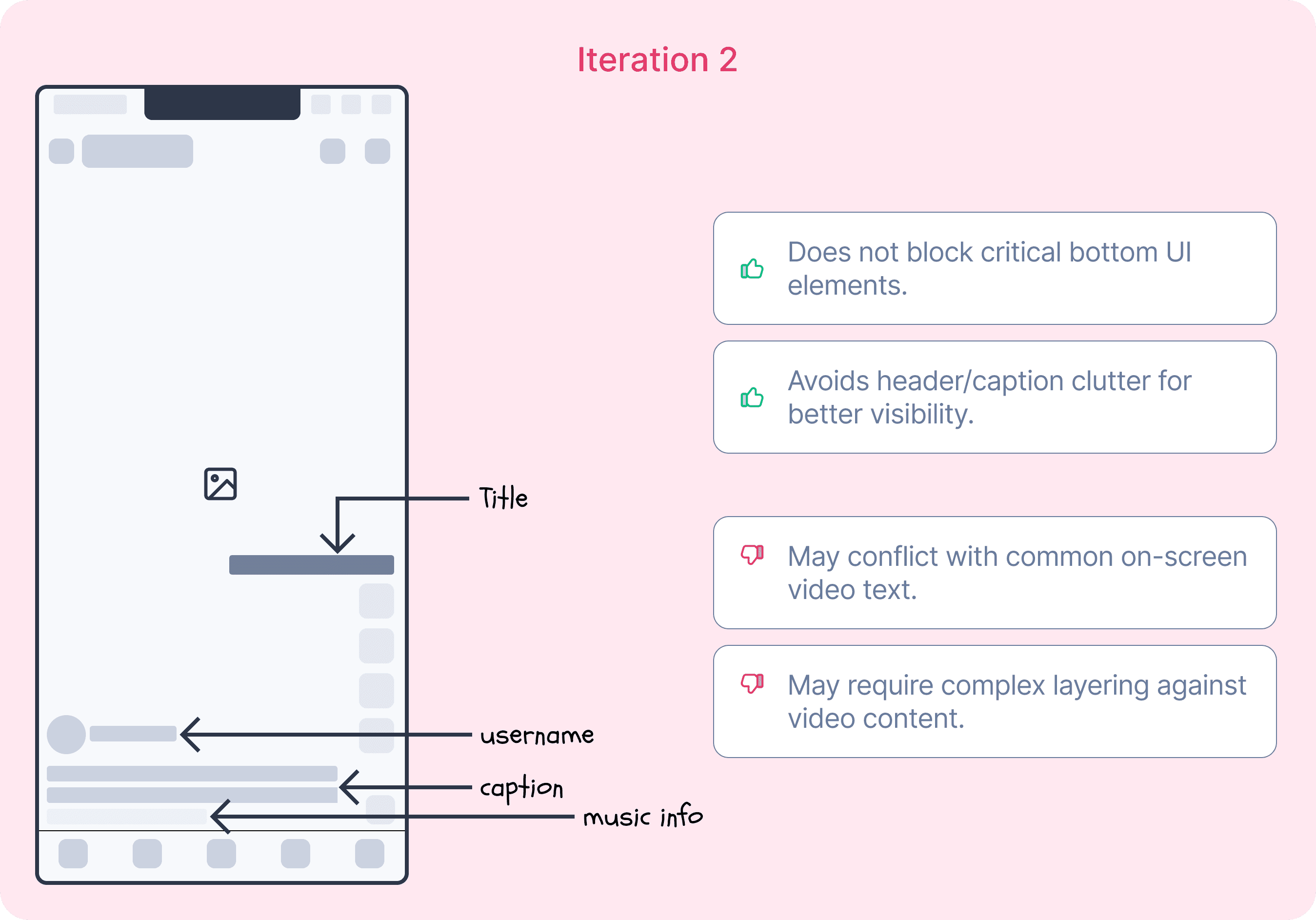 Future Scope: A necessary redesign of the Institle UI for Reels is required. The focus will be on dynamic, contextual placement that appears only when the user interacts with the screen, ensuring the title remains visible without obstructing the main video content.